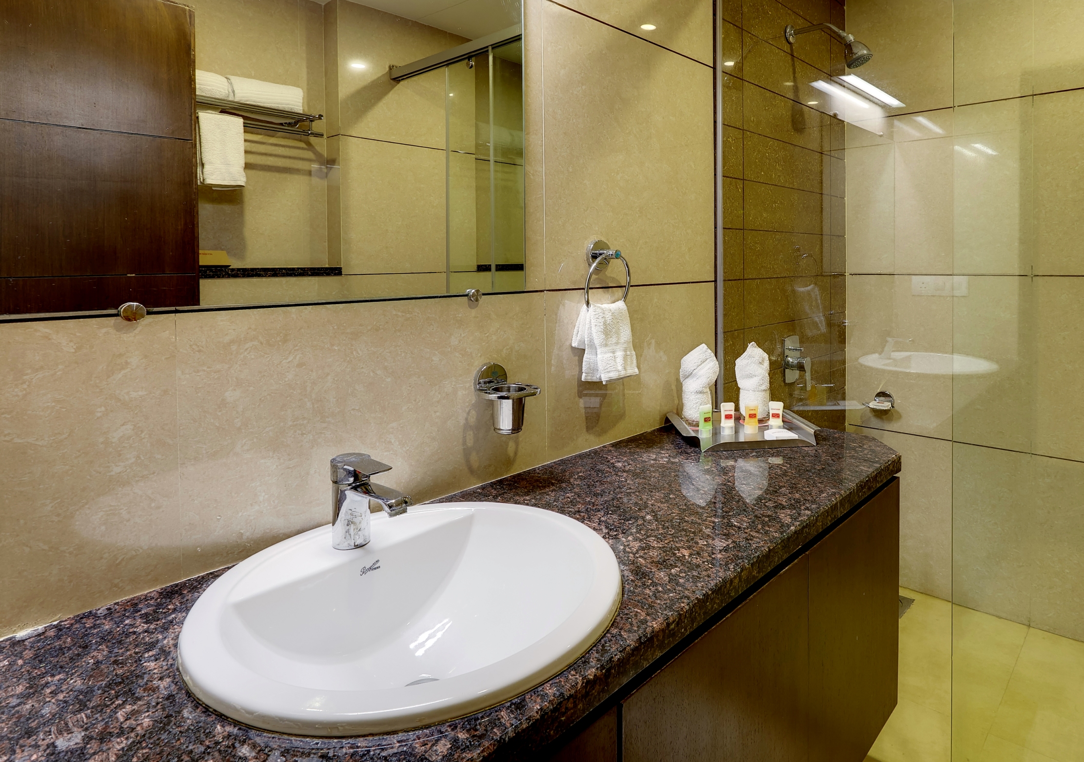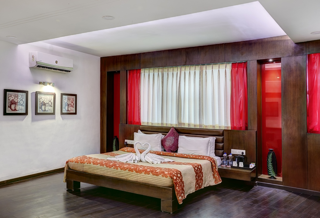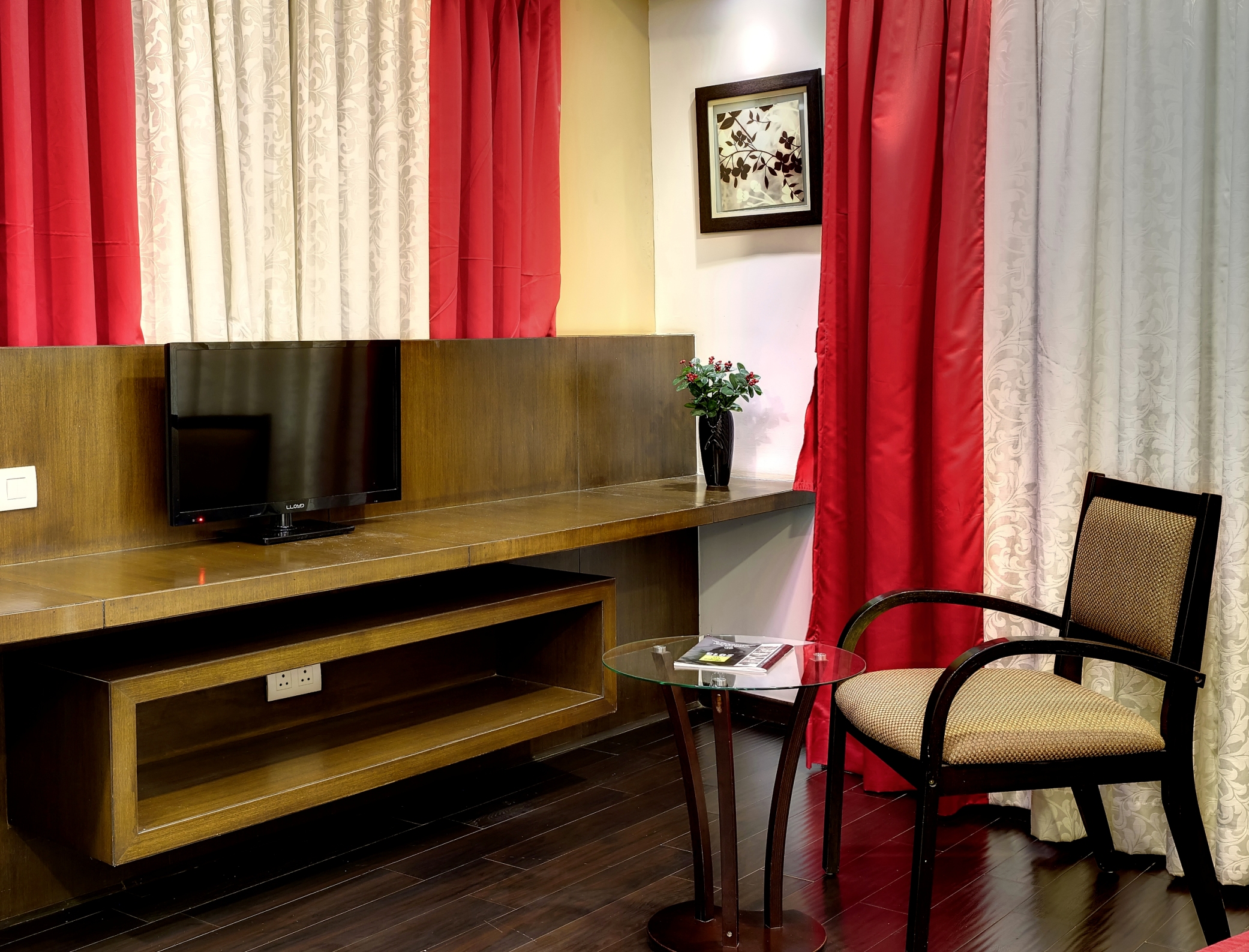 - Amenities: Air-Conditioning, Chair, Cupboard, Executive work-desk, Free Wi-Fi, Hairdryer on request, Hot and cold water in room, Hot Pot, In-room safe, Jacuzzi bathtub, laundry Bag, LED TV, Mini Bar, Sofa, Table, Tea Catel, Telephone